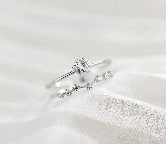 Sterling Silver Star Ring Adjustable Layered Ring
