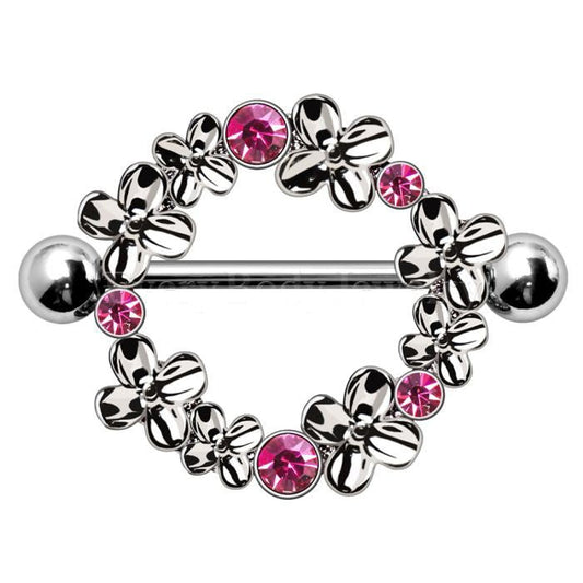 316L Stainless Steel Pink Flower Wreath Nipple Shield