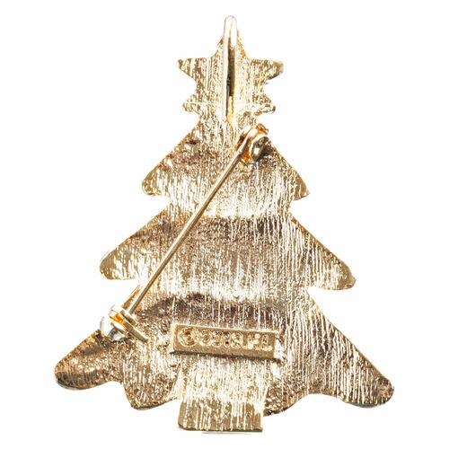 Christmas Jewelry Crystal Rhinestone White Enamel Christmas Tree Pin