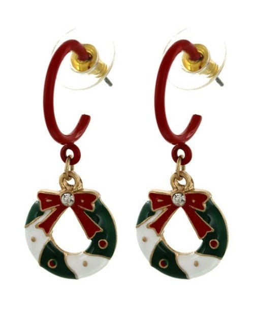 Christmas Wreath Dangle Hoop Earrings