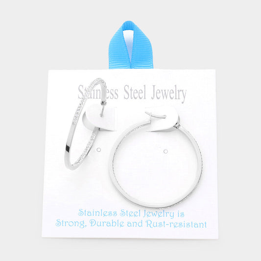 20% OFF class="card__heading" > Stainless Steel 1.7 Inch Inside Out Rhinestone Hoop Pin Catch Earrings