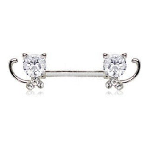 316L Stainless Steel Jeweled Kitty Cat Nipple Bar