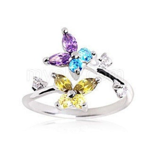 .925 Sterling Silver Multi Color CZ Butterflies Toe Ring