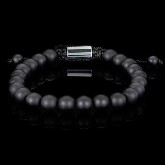 CRUCIBLE MEN'S MATTE BLACK AGATE STONE BEADED ADJUSTABLE BRACELET