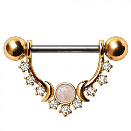 Gold Plated Multi Jeweled Moon and Stars Nipple Shield