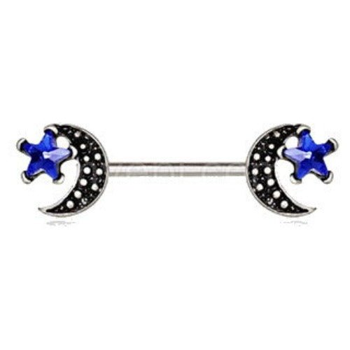 316L Stainless Steel Moon and Blue Star Nipple Bar