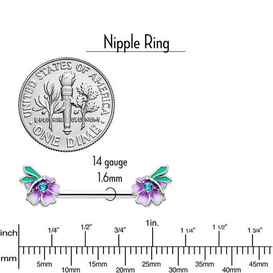 30% OFF class="card__heading" > 14G 9/16 Blue Gem Faerie Flower Purple Barbell Nipple Ring Set