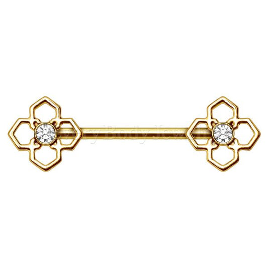 Gold Plated Ornate Flower Nipple Bar