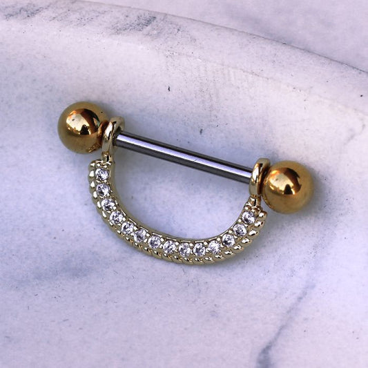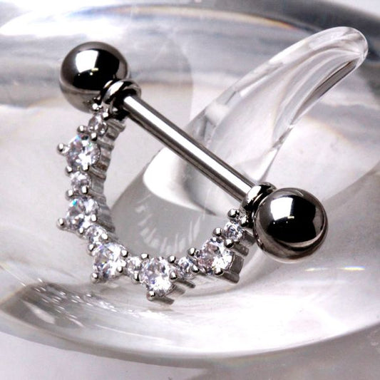 Our collection includes nipple barbells (straight bars with decorative ends), nipple shields (ornate designs that frame the nipple), nipple hoops and rings, and dangle nipple jewelry with chains and charms.
