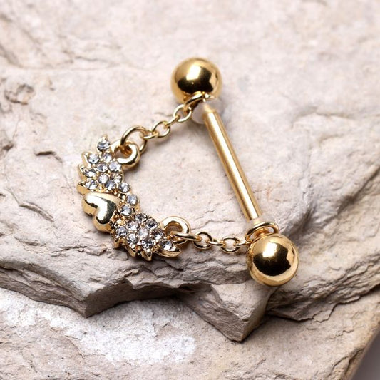 Gold Plated Jeweled Winged Heart Nipple Ring