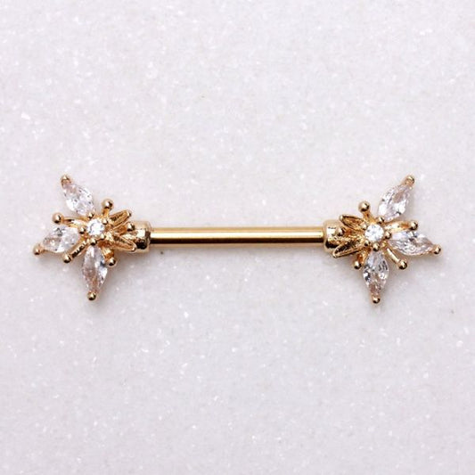 Gold Plated Pinwheel Flower Nipple Bar