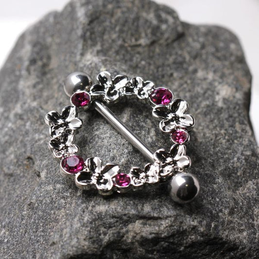 316L Stainless Steel Pink Flower Wreath Nipple Shield