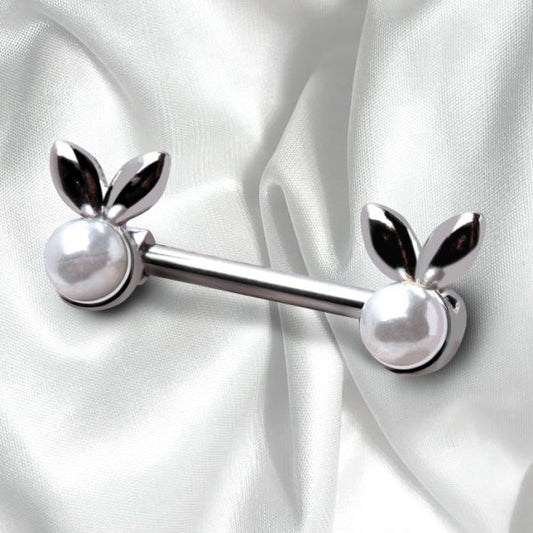 316L Stainless Steel White Faux Pearl Bunny Nipple Bar