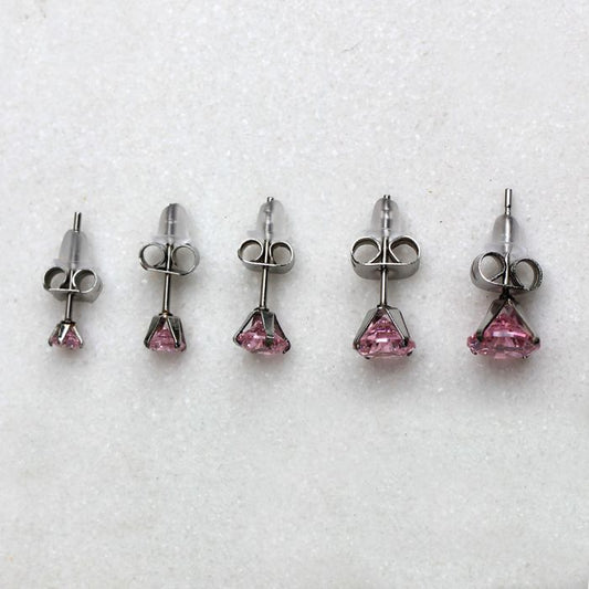 Pair of 316L Surgical Steel Pink Round CZ Stud Earrings
