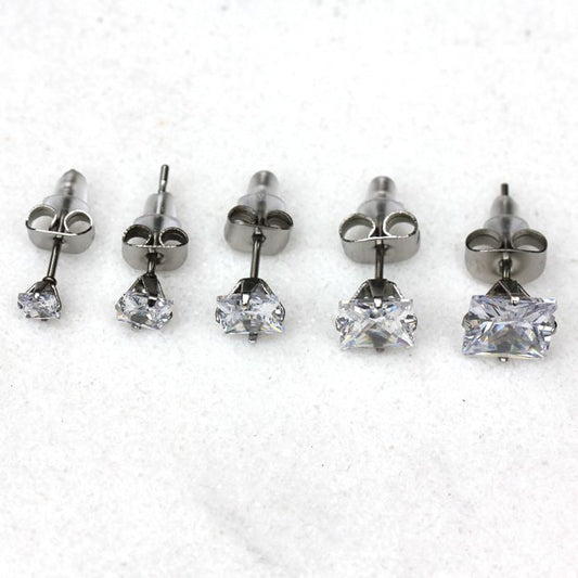 Pair of 316L Surgical Steel Clear Princess Cut CZ Stud Earrings
