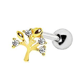 Yellow Gold Sparkling Tree of Life Cartilage Earring