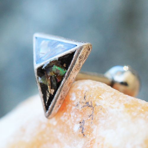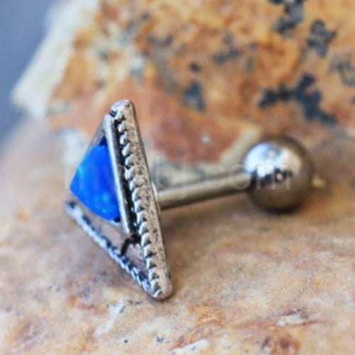 316L Stainless Steel Blue Synthetic Opal Triangle Cartilage Earring