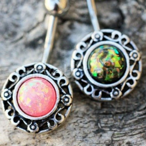 316L Stainless Steel Antique Navel Ring with Adorned Synthetic Opal