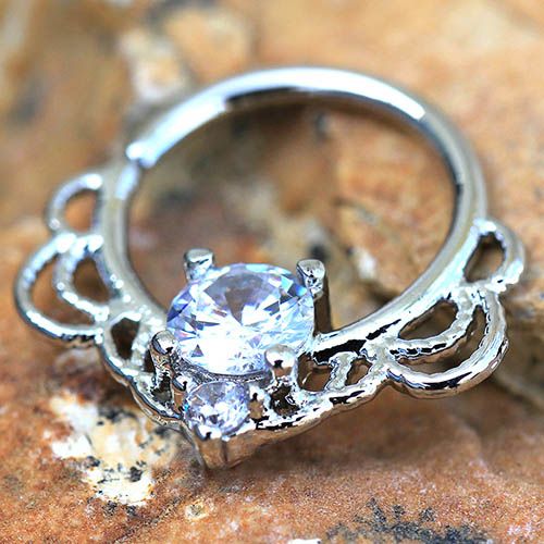 316L Stainless Steel Prong Set CZ Captive Bead Ring / Septum Ring