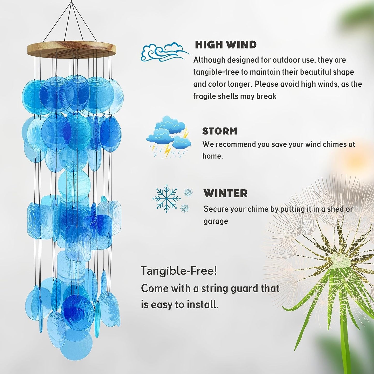 Blue Seashell Glass Wind Chimes 28" with Wall Stand Garden Decor Housewarming