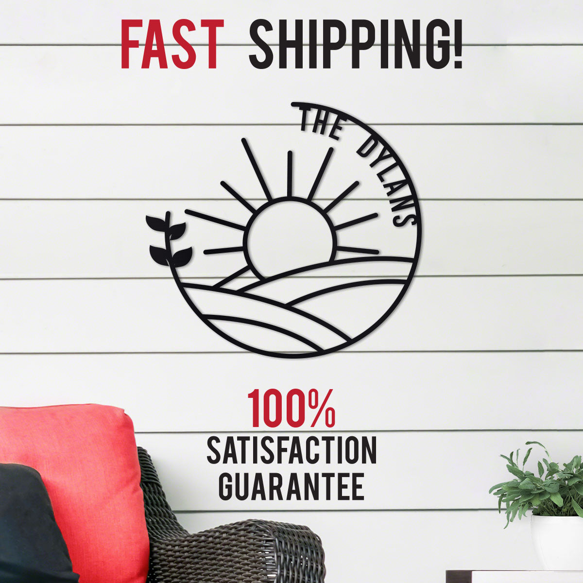 The Island Sunset Vine Circle Name Sign is a versatile addition to your home decor, suitable for both indoor and outdoor use. Crafted from durable 16-gauge steel, this name sign is designed to withstand the elements while maintaining its beauty. Each sign is expertly painted with premium-grade paint for enhanced durability, ensuring it will last for years to come.