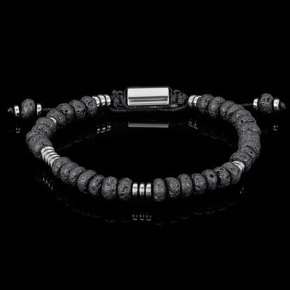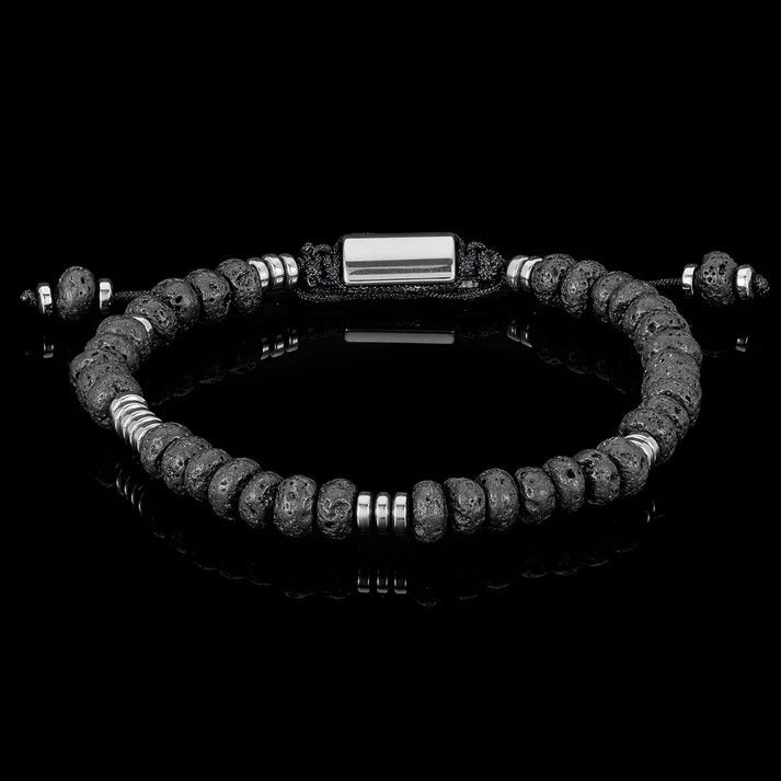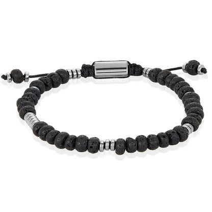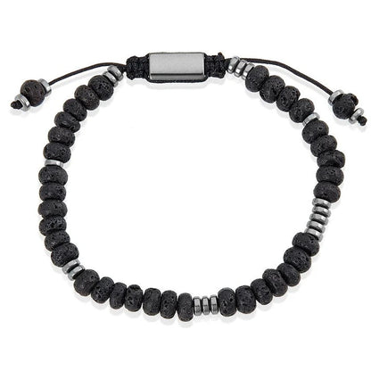 Lava Rondelle Beads with Hematite Disc Beads on Adjustable Cord Tie Bracelet