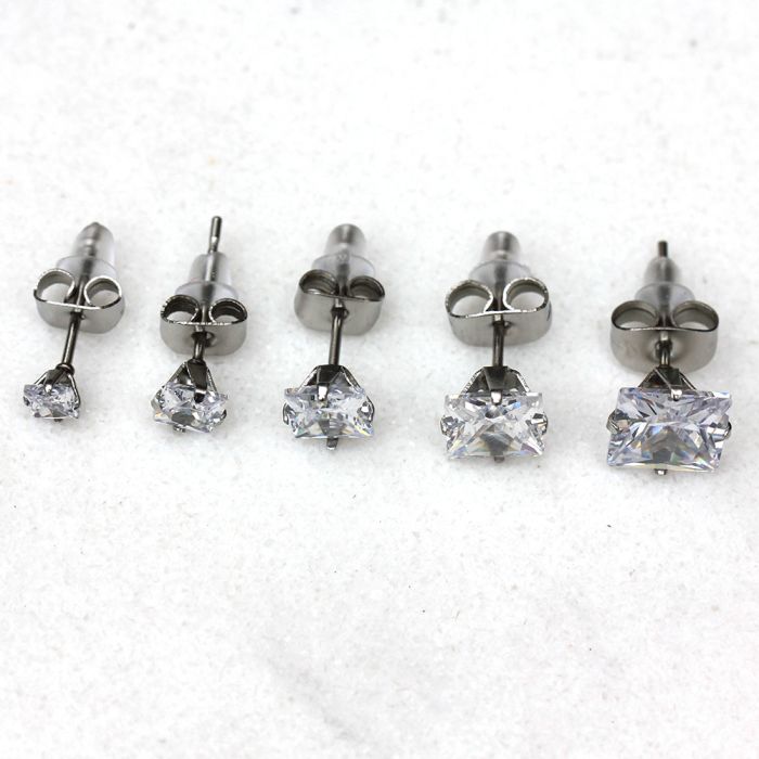 Elevate your everyday look with these stunning princess cut CZ stud earrings that combine timeless elegance with brilliant sparkle! These beautiful earrings feature finest prong-set cubic zirconia stones in a sophisticated princess cut (square shape), creating a modern, geometric sparkle that catches the light from every angle. The princess cut is one of the most popular diamond shapes, offering a contemporary alternative to traditional round studs while delivering maximum brilliance and fire. Crafted from premium 316L surgical steel, these stud earrings are hypoallergenic, nickel-free, and safe for long-term wear, making them perfect for sensitive ears and everyday use. Each earring comes with both a metal clutch and a rubber clutch, giving you options for secure wear based on your preference and comfort level. The innovative grooved post design helps prevent the loss of the clutch, ensuring your earrings stay securely in place throughout your day. Available in 5 different CZ sizes (2mm, 3mm, 4mm, 5mm, and 6mm), you can choose the perfect size to match your style preference - from subtle and delicate to bold and eye-catching. The versatile design makes these studs perfect for work, special occasions, or everyday elegance, offering the sparkle of diamonds without the price tag. These classic earrings are also ideal for second, third, or multiple ear piercings, allowing you to create a coordinated ear stack!