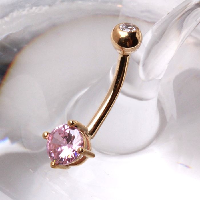 14Kt Gold Navel Ring with Prong Set Round CZ