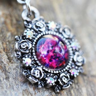 Add vintage elegance to your belly with this stunning Victorian style pendant dangle navel ring! Featuring a beautiful pendant with a red oval center surrounded by flowers and CZ gems, this ornate piece brings timeless sophistication to your navel piercing.