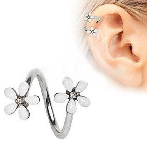 316L Stainless Steel White Wild Flower Twist Cartilage