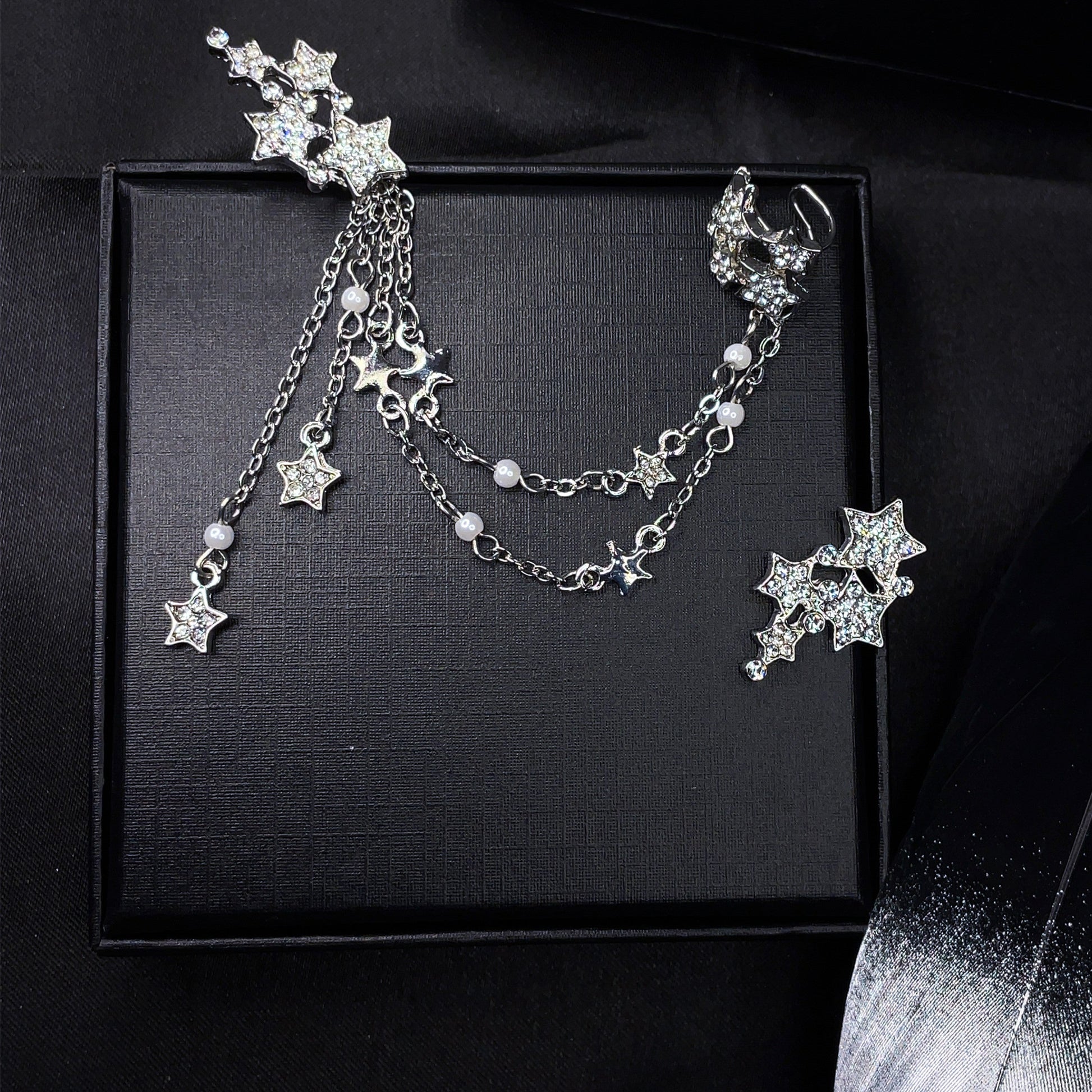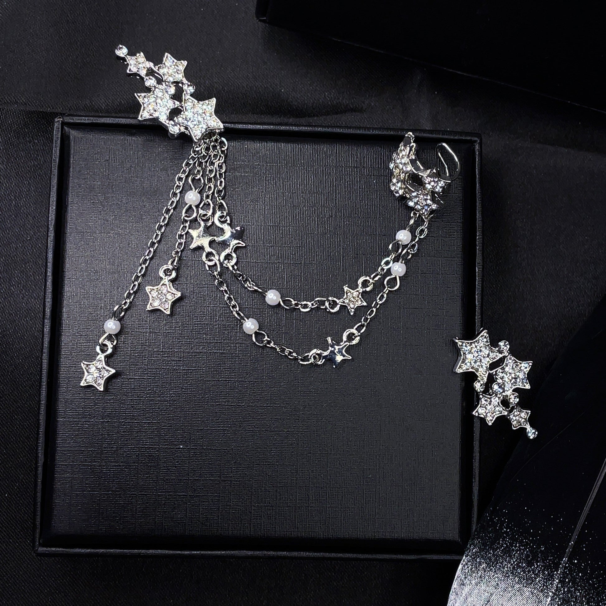 These enchanting earrings create a sophisticated, connected look that appears to wrap around your ear with celestial charm. The asymmetrical star design adds a touch of whimsy and wonder, while the lightweight construction ensures you can wear them comfortably all day. The unique ear cuff style gives the illusion of multiple piercings while only requiring one pierced hole, making them perfect for adding celestial elegance to your look without commitment.