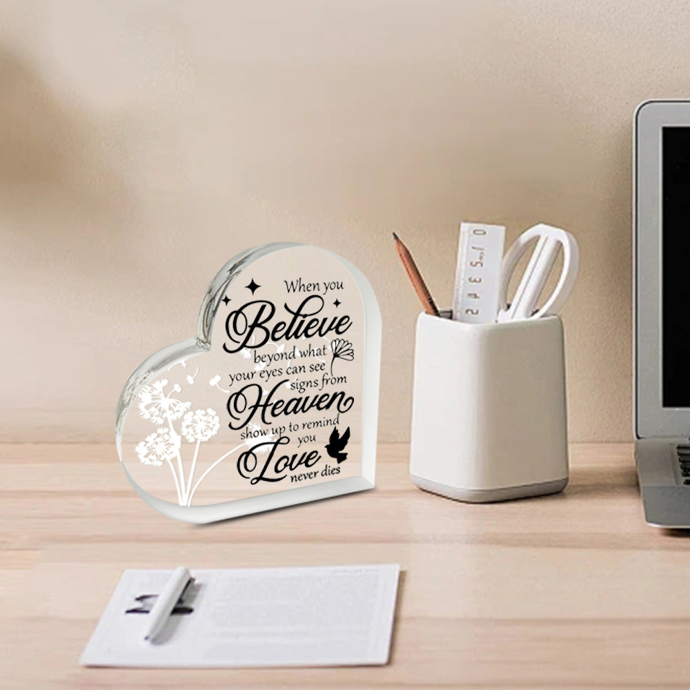 Whether given as a heartfelt gesture to a grieving friend or as a personal keepsake to honor a beloved family member, this acrylic heart is a lasting memento that keeps their light shining bright. Provide a memorial gift that truly keeps giving, offering solace and comfort with each gentle breeze and every heartfelt glance.