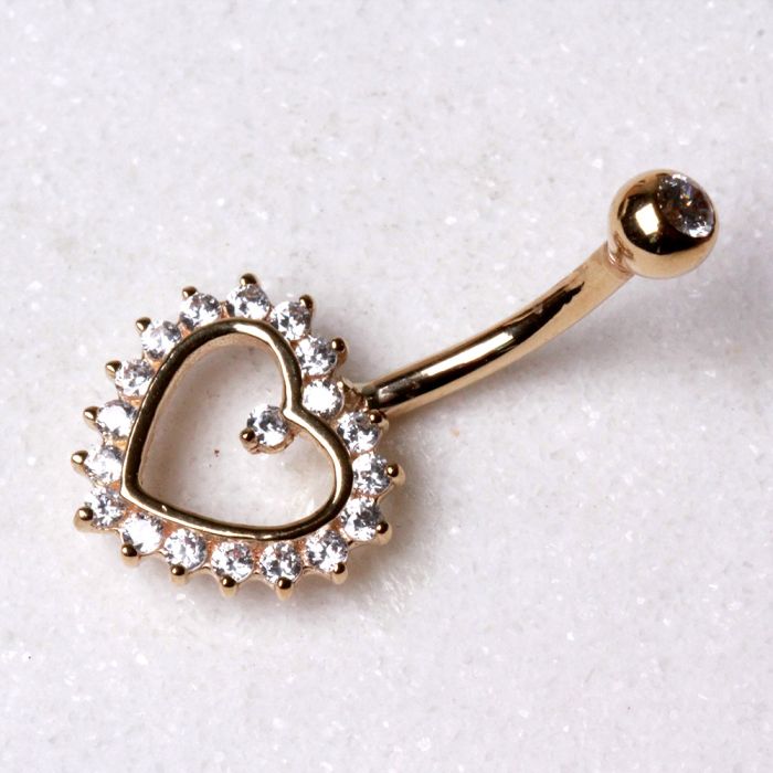 14Kt. Yellow Gold Navel Ring with Heart - Luxury Real Gold Belly Jewelry