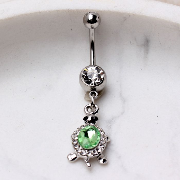 - Design: 316L stainless steel dazzling green turtle dangle navel ring