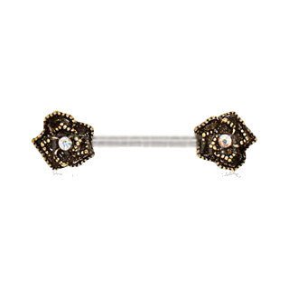 • Nipple Barbell / Nipple Jewelry with antique gold plated flower design