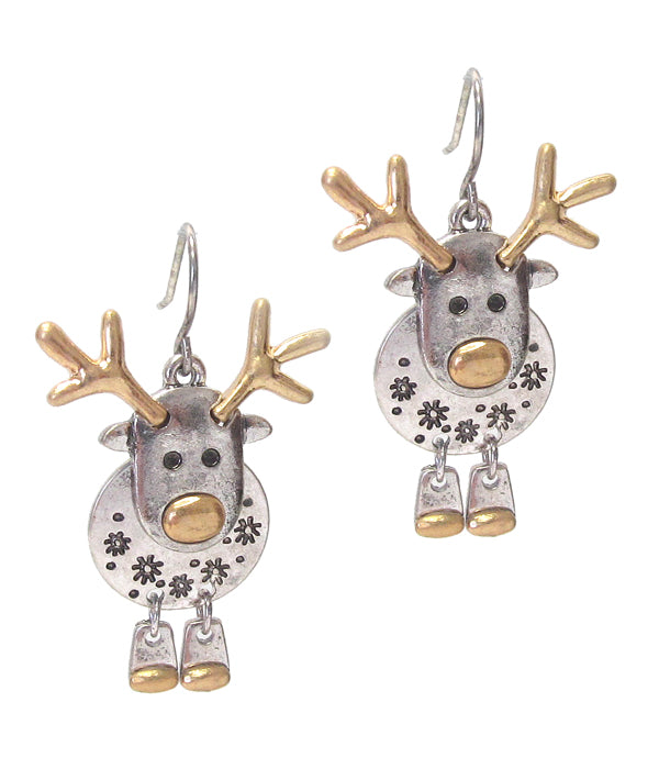 Jingle all the way in these Christmas Reindeer Two Tone Earrings! Burnished silver and gold metal make for a jolly combo that's lead and nickel compliant. 'Tis the season to rock a fish hook earring set, with a drop length of 1 x 1 1/4 inches for maximum holiday cheer. Not to mention they're Absolutely Adorable!!!