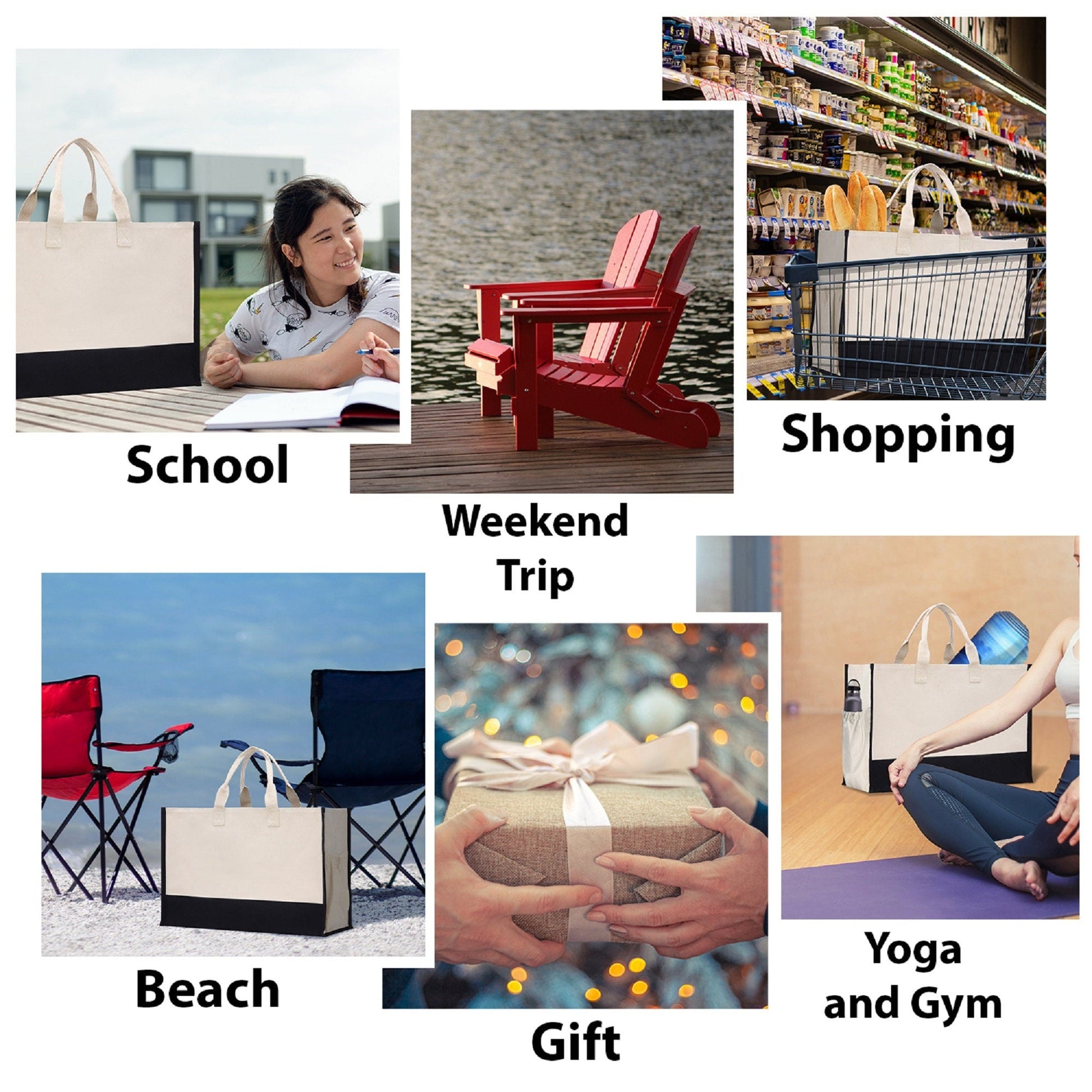 ❤ MULTIPURPOSE BEACH BAG: Elegant and practical, this canvas beach bag is great for family picnics, pool, sports, beach, hiking, gym, and more. Use it as a cruise bag, exercise bag, grocery bag, sports bag, summer bag, duffel bag picnic bag, or travel bag for storing your outdoor essentials. You can choose your designed bags which are available Beach Please, Escape, Getaway, Honeymoon Vibes, Lake Life, Peace Out, Road Trip, Weekend Vibes