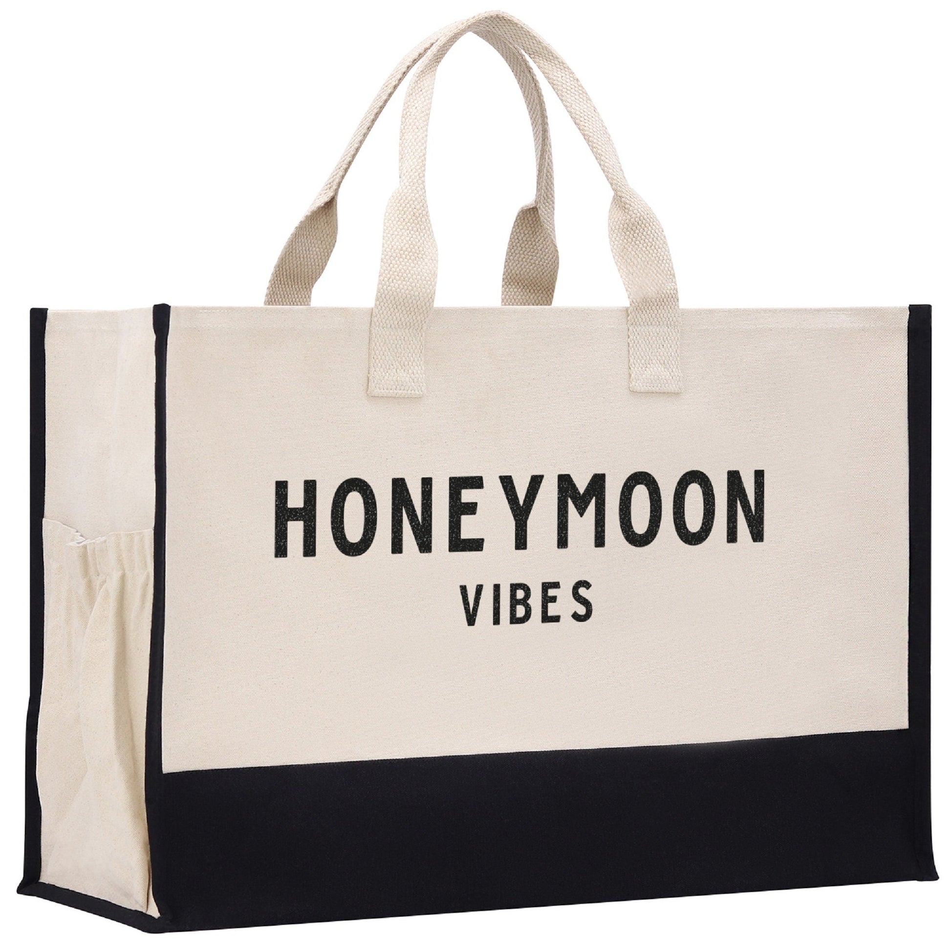 Honeymoon Vibes Beach Tote Bag XL - Oversized Chic Tote Bag with Zipper and Inner Pocket -Honeymooners Honeymoon Gifts Bridal Gift Newlyweds