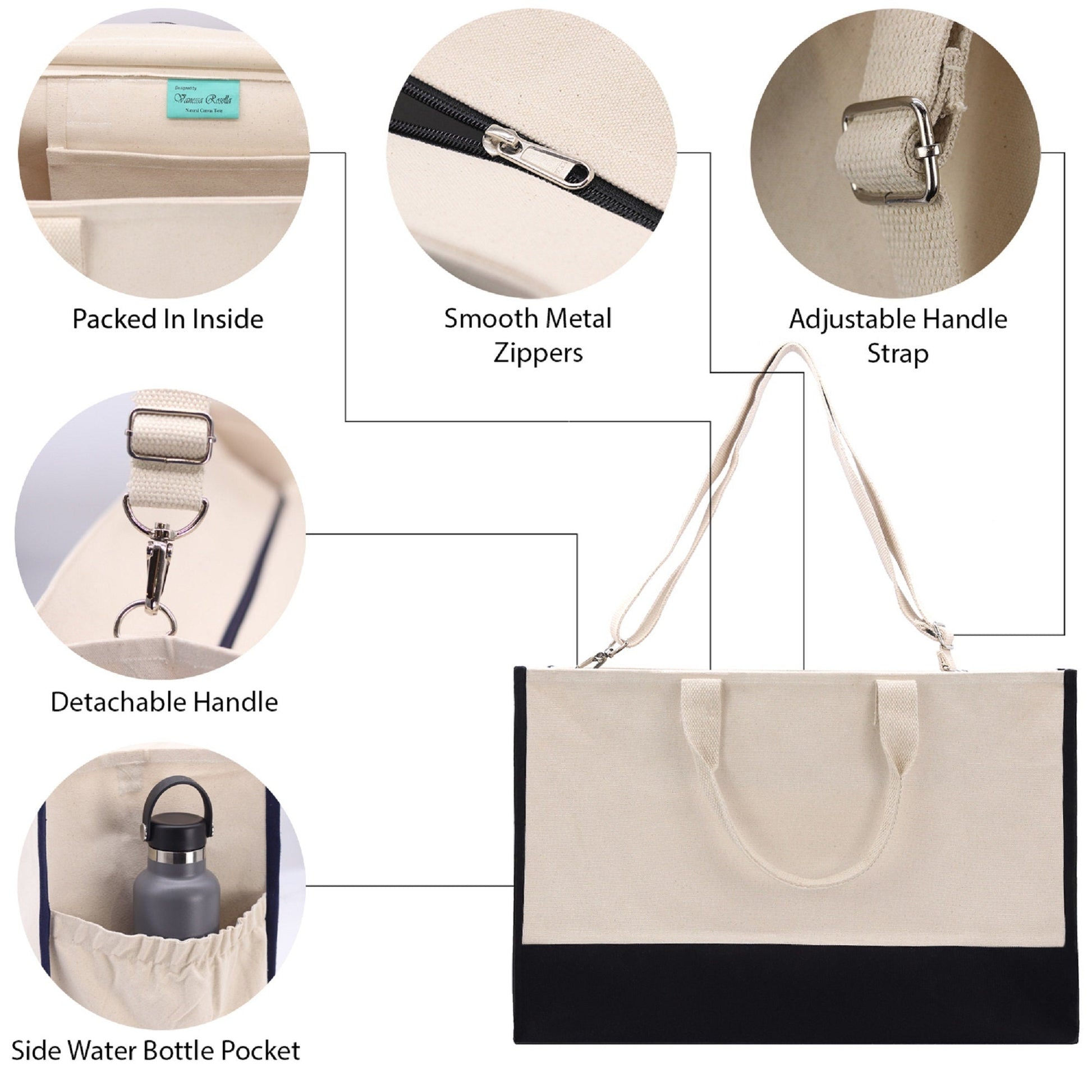 ❤ SUPERIOR CONSTRUCTION: This tote beach bag is made of the highest quality canvas material with good stitching that will never let you down. The tote bag is durable, water-resistant, easily washable, and long-lasting; provides your essentials will excellent protection against damage and water!
