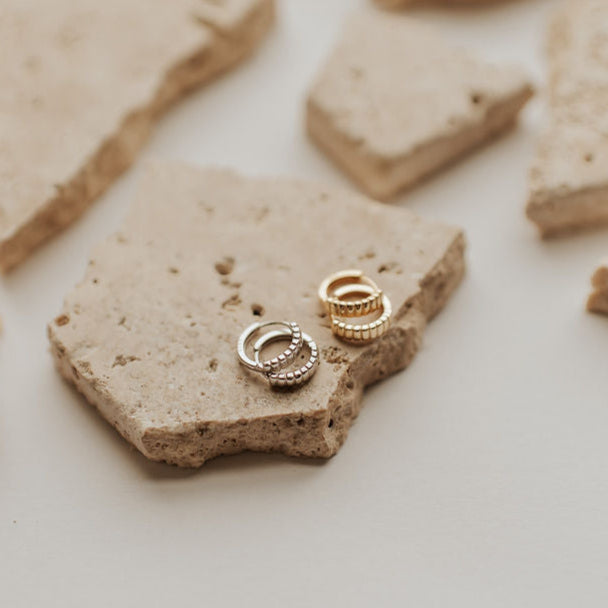 The Rory Hoops are the perfect subtle hoops that go with anything! Featuring a huggie closure style and made from from high quality gold vermeil or sterling silver. Perfect on their own or in an earring stack!